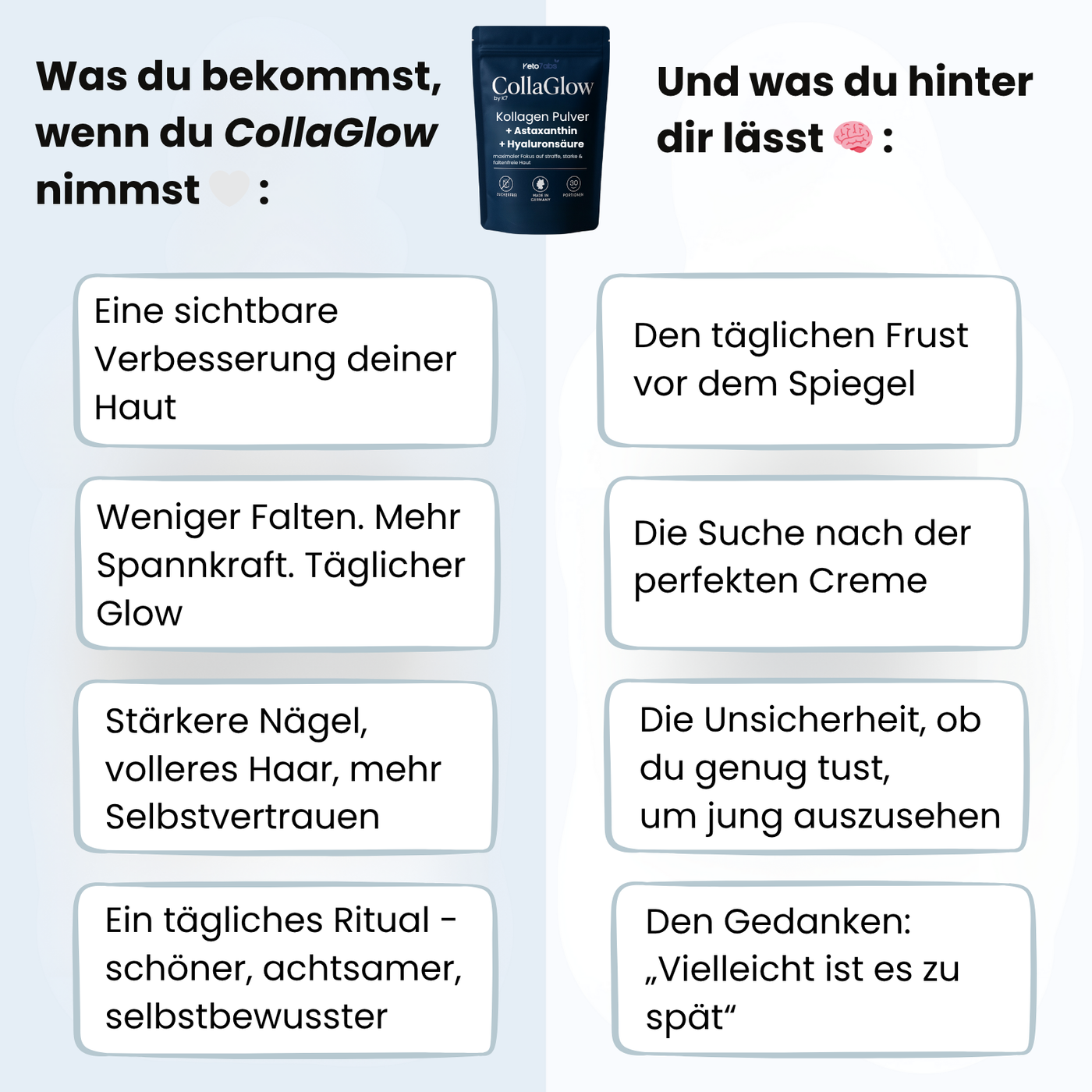Teste CollaGlow 30 Tage – siehst du keinen Unterschied, bekommst du dein Geld zurück.