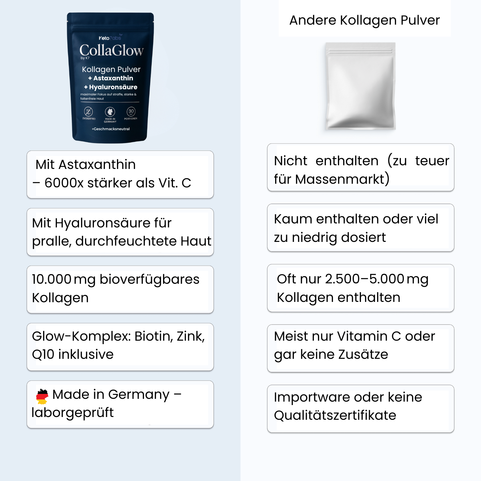Die einzigartige CollaGlow Kollagen-Kur im Vergleich zu herkömmlichen Produkten